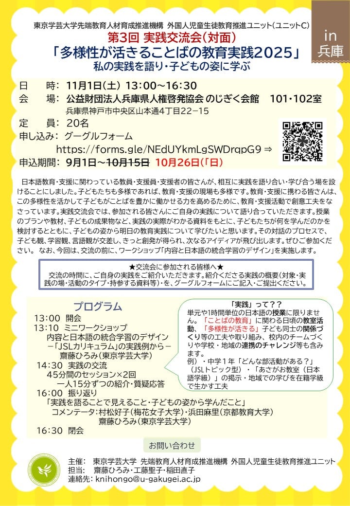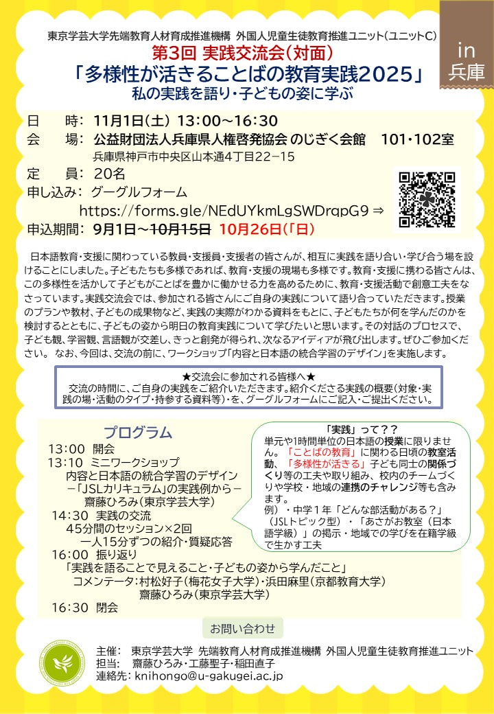 「多様性が活きることばの教育実践2025」実践交流会(対面) 第3回 神戸